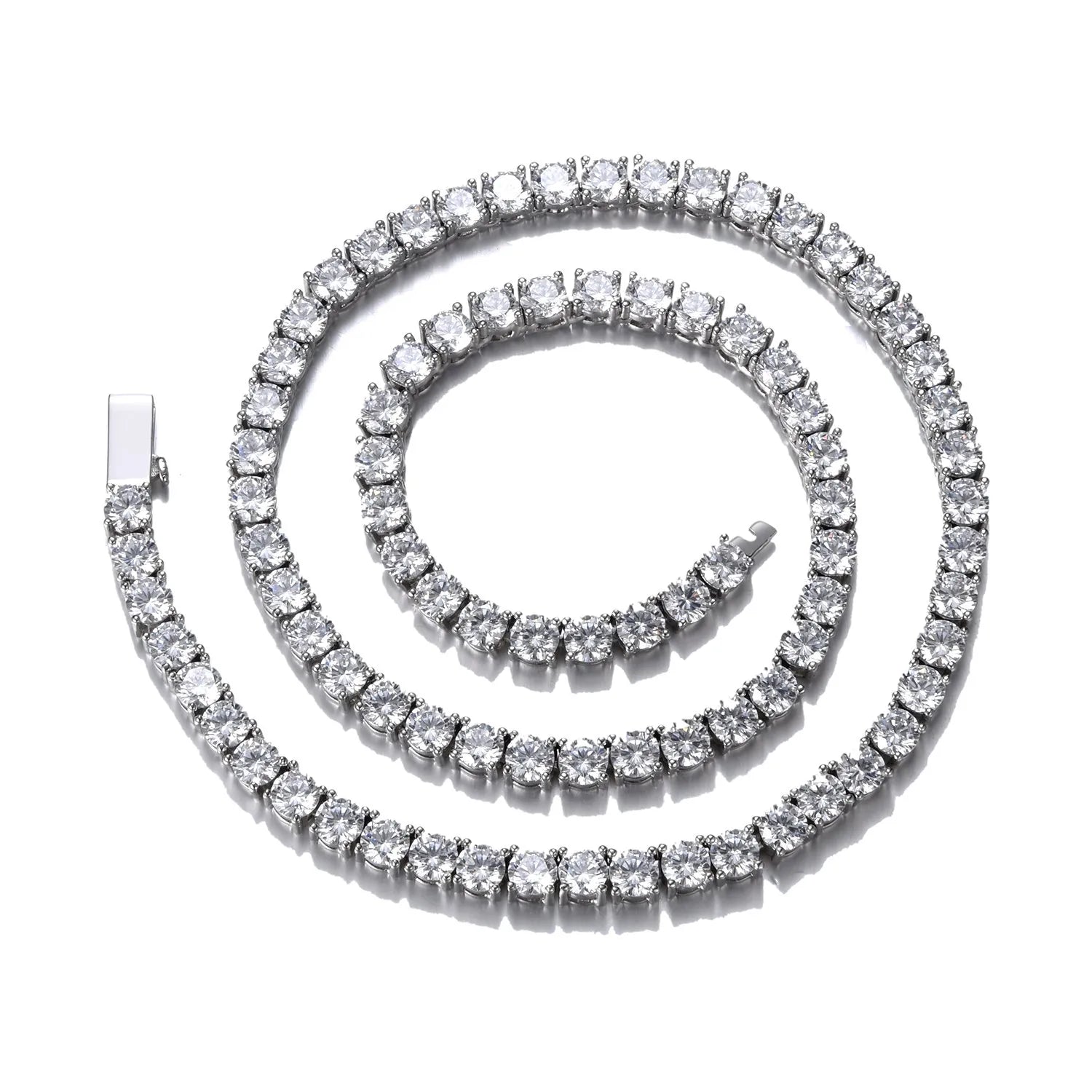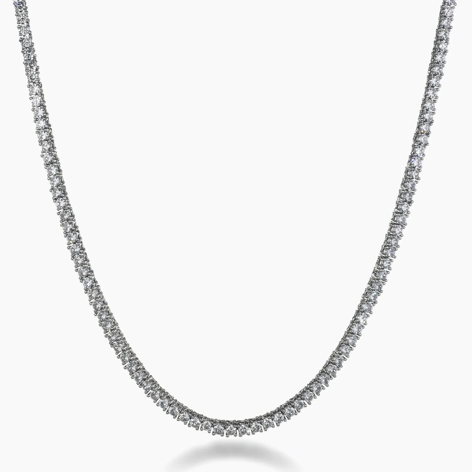Base Metal: Solid brass Plating: Rhodium (white gold) or 18K yellow gold Stones: Handset cubic zirconia (CZ), round cut Width: 3mm Length Options: 16", 18", 20", 22", 24" Weight: 0.05 kg Style: Round cut tennis chain Guarantee: Lifetime warranty on craftsmanship