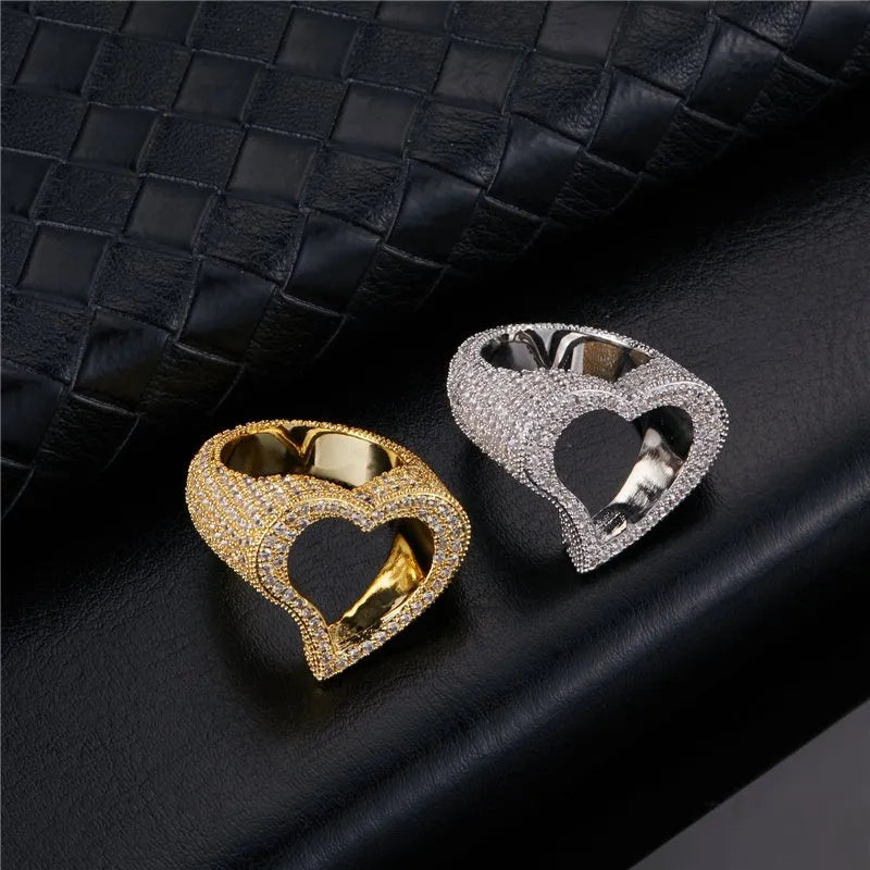 Heart Ring is built for clean flex and stackable style. Crafted from solid brass and iced with handset CZ stones, it’s available in yellow gold or white gold plating. The open heart design delivers a statement look that’s versatile enough for daily wear or layered stacks.